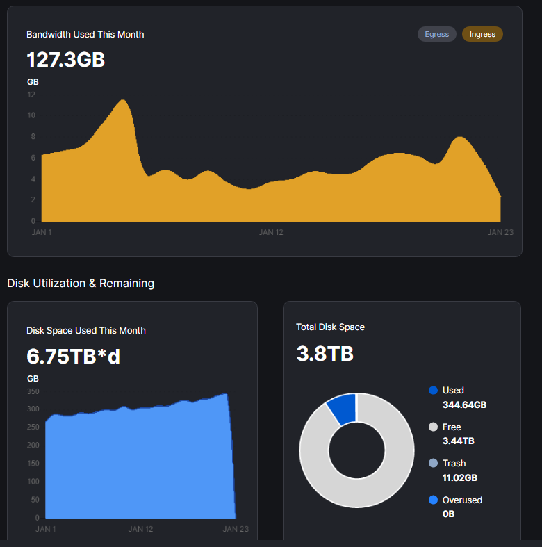node. Started around late sept/early oct. Fully vetted, as you can see on the graph, the used space is continously increasing: