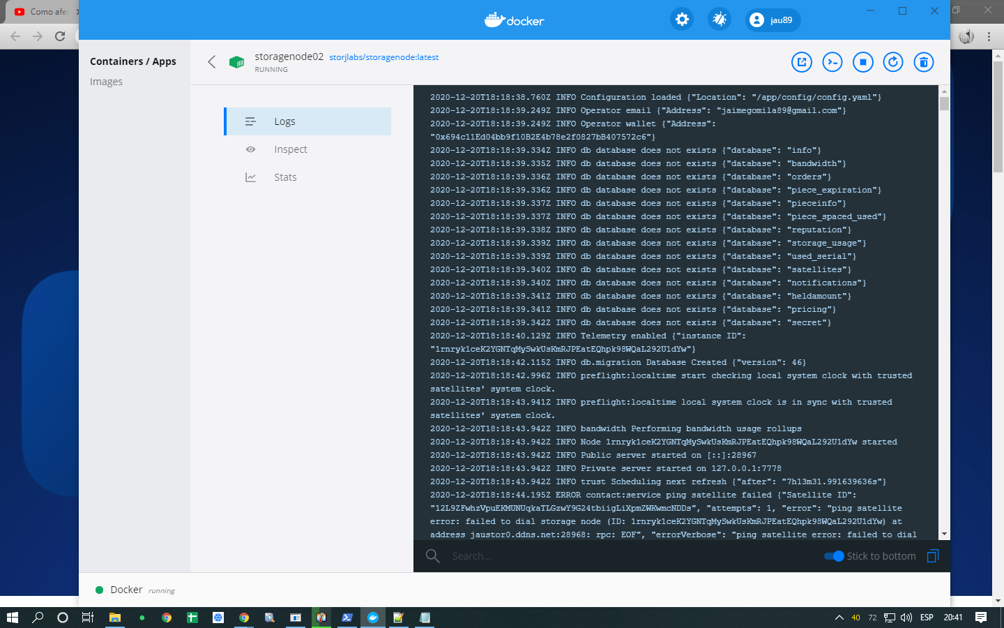 2020-12-20T18:18:39.249Z INFO Operator email {“Address”: “jaimegomila89@gmail.com”}
