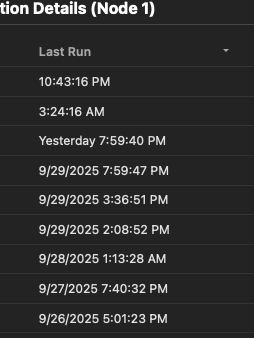 Also, a date field for the compaction history. Currently it’s showing time of run, but with multiple days in history it’s a little hard to know when it was run.