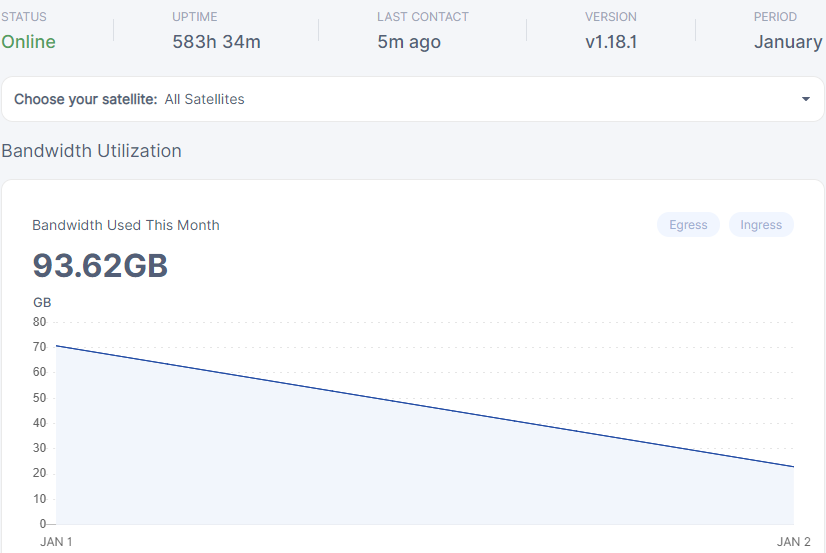Note: dips in values (mainly in diskspace used, although egress really did dip quite a lot) from yesterday are due to the fact that the dashboard resets at the end of month, so I captured the info a few hours before hand just so that I’d have something there for 31Dec2020.