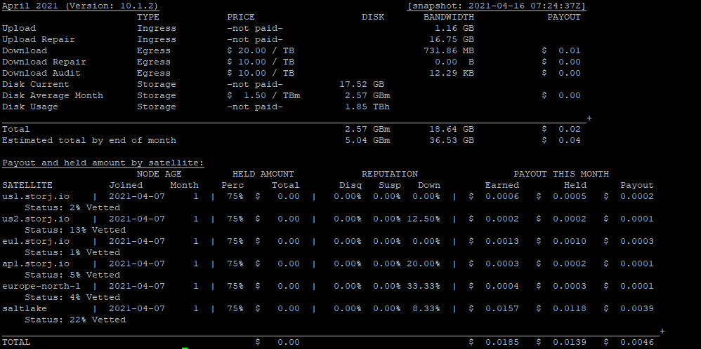 my unvetted node, sharing ip with vetted, joined 8th april