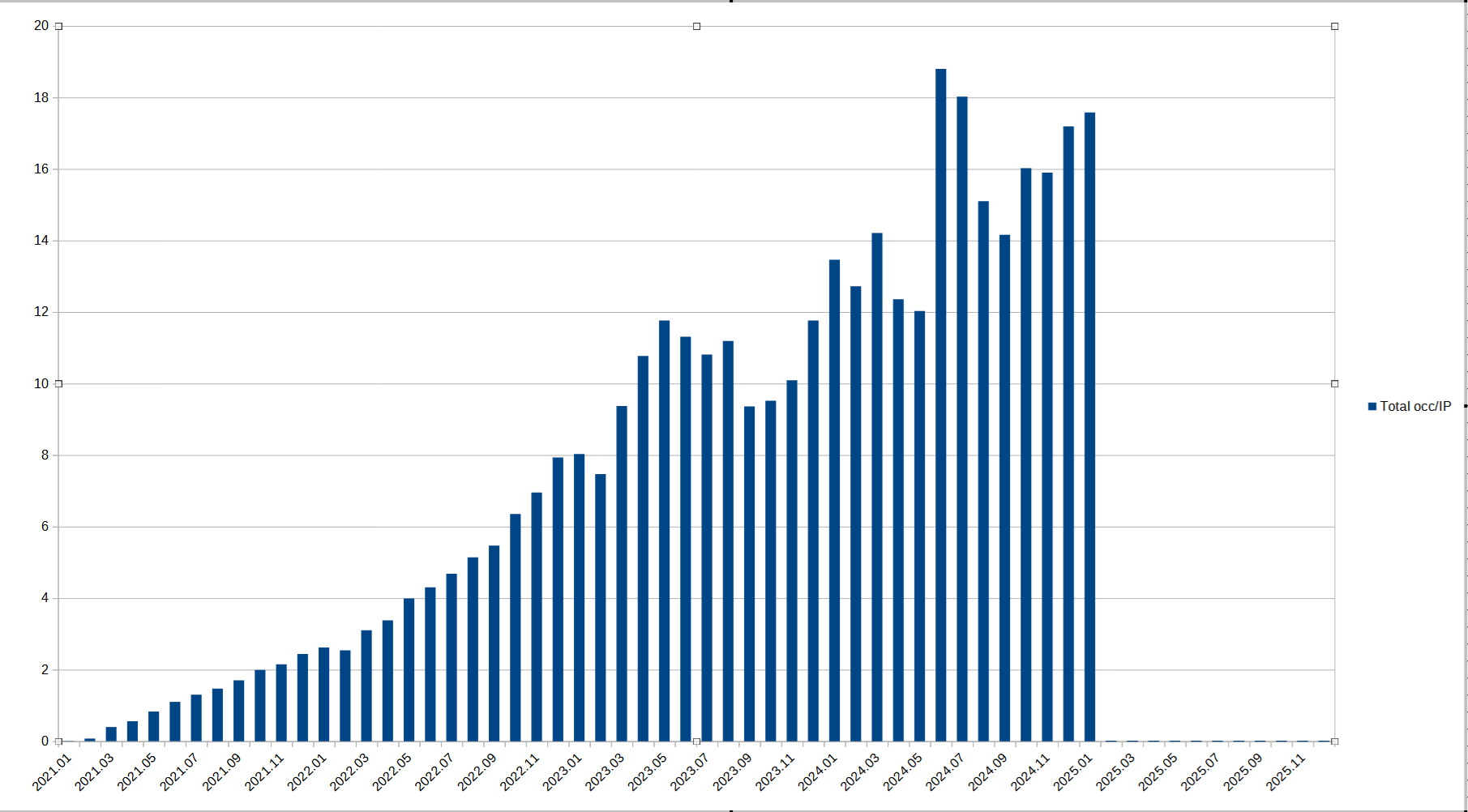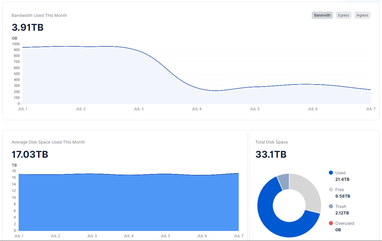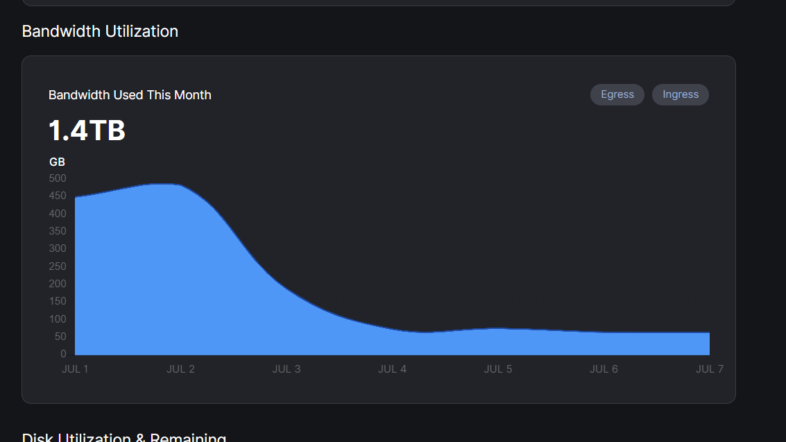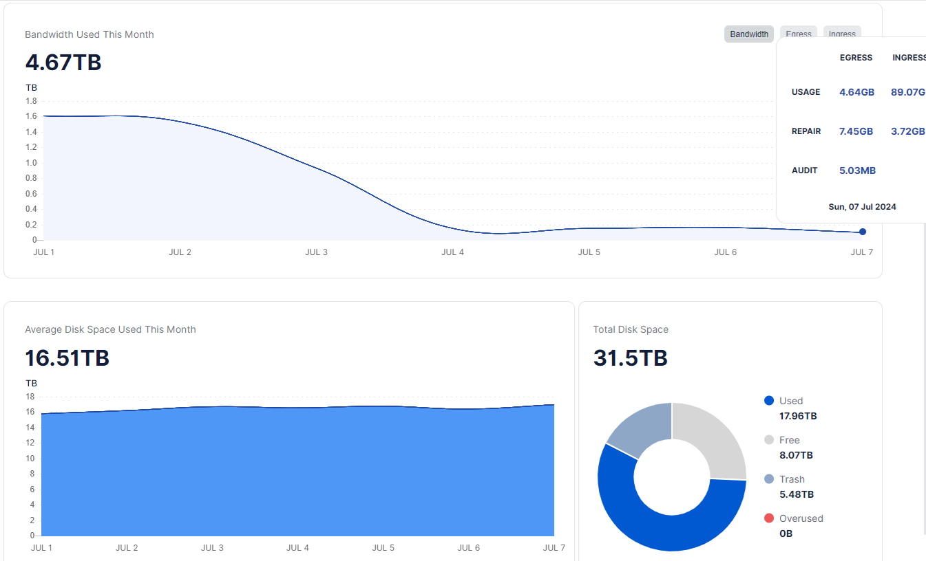 Just a nice chart with my oldest node, after 4 years. Data in TBs of occupied space per month, from Payout dashboard table. Now it’s actualy a system with 2 drives/nodes, but under the same IP, so take it like one node. From last summer, the SL is graceful exited on both.