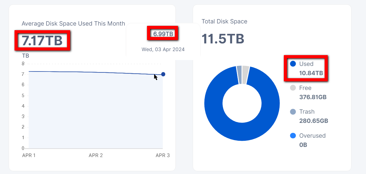 And as I see the graph as display of daily used space, of course I believe that the 10TB shown on the right, should show on the left as well, assuming the 10TBs are the correct value. If the 10TBs are not correct, but the 7 TB then the question remains, why is there 3 TB more data stored than it should be.