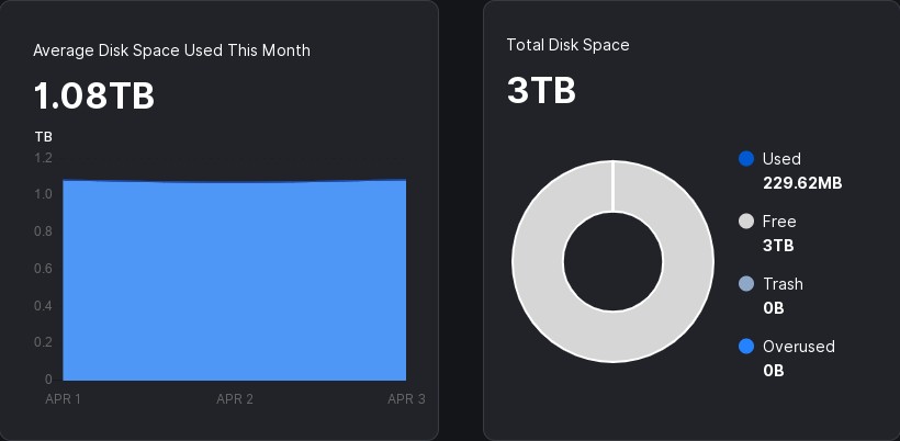 The databases are in a ramdisk and are deleted on every host restart. The node clearly has no idea what data it has on it (there arenāt any databases to refer back to), so it gets this data from somewhere. What I suspect is happening is that the satellite says āyou should have this much data on April 1st, this much data on April 2nd, and this much data on April 3rdā. The left side is an average of those three values. Yes they are reported in bytes, but they are used as TBm. Ie at the end of the month it should match.
