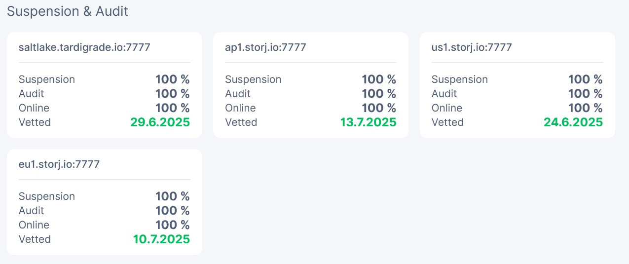 I wonder if there is a false positive bug as well? This node was started 19.06.2025. So according to dashboard US1 vetting was done in 5 days. ![]()