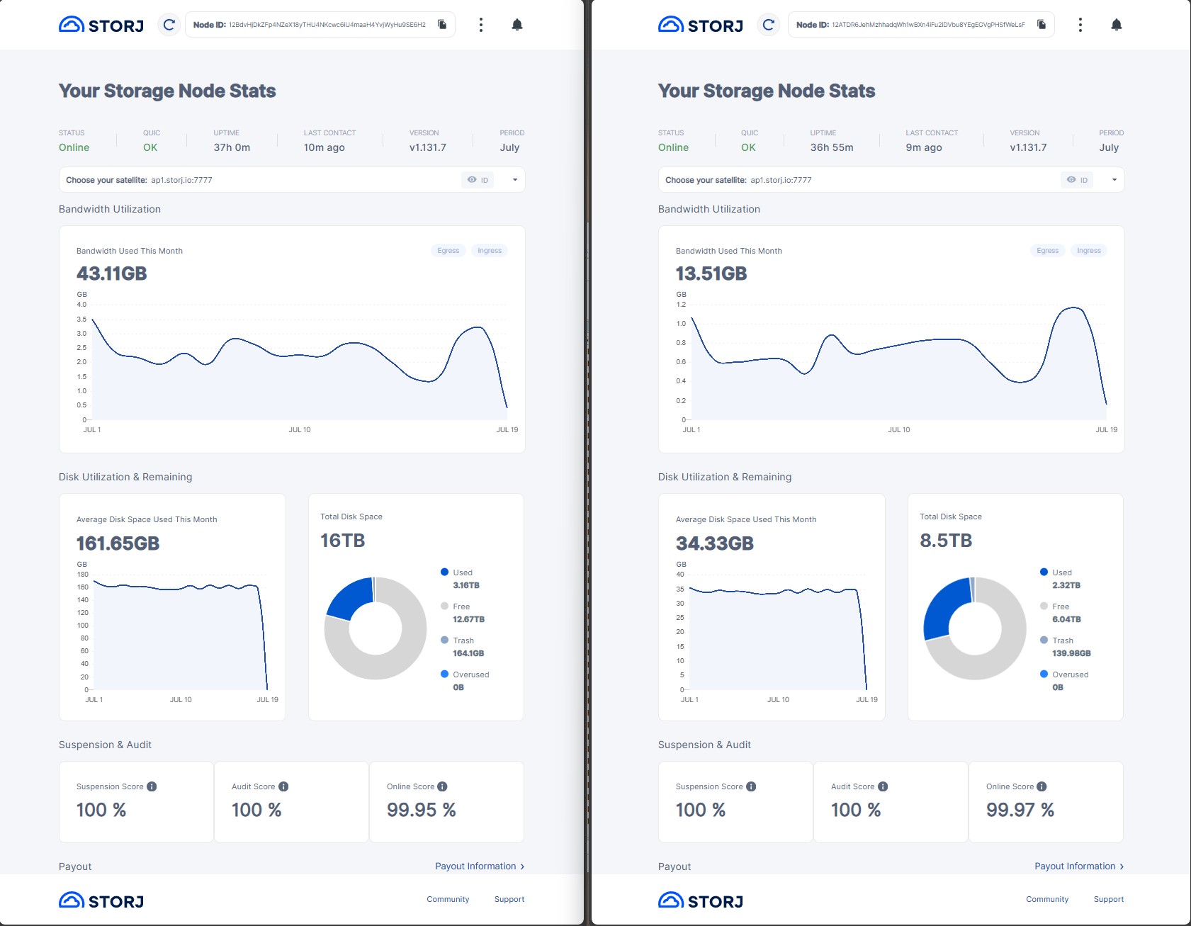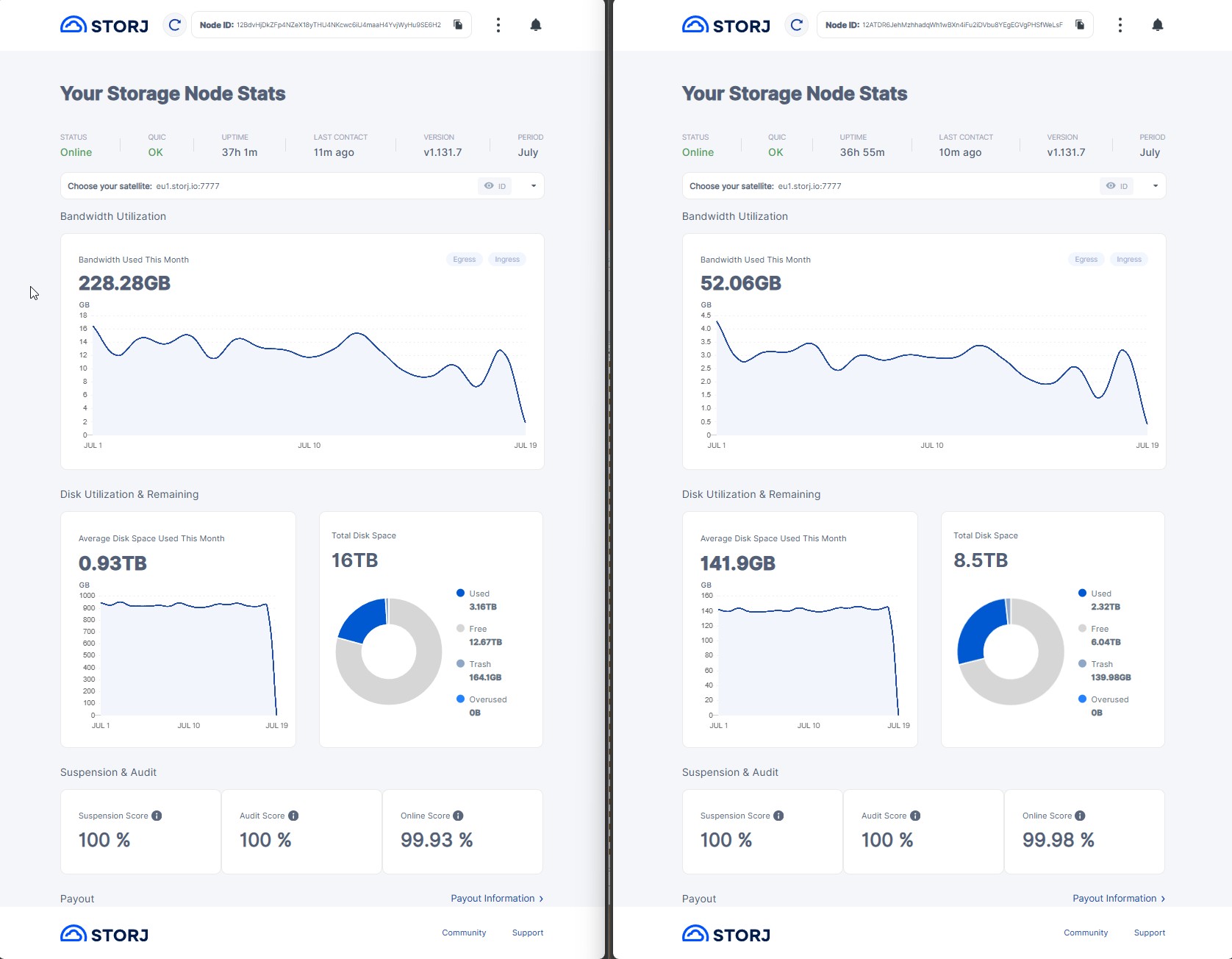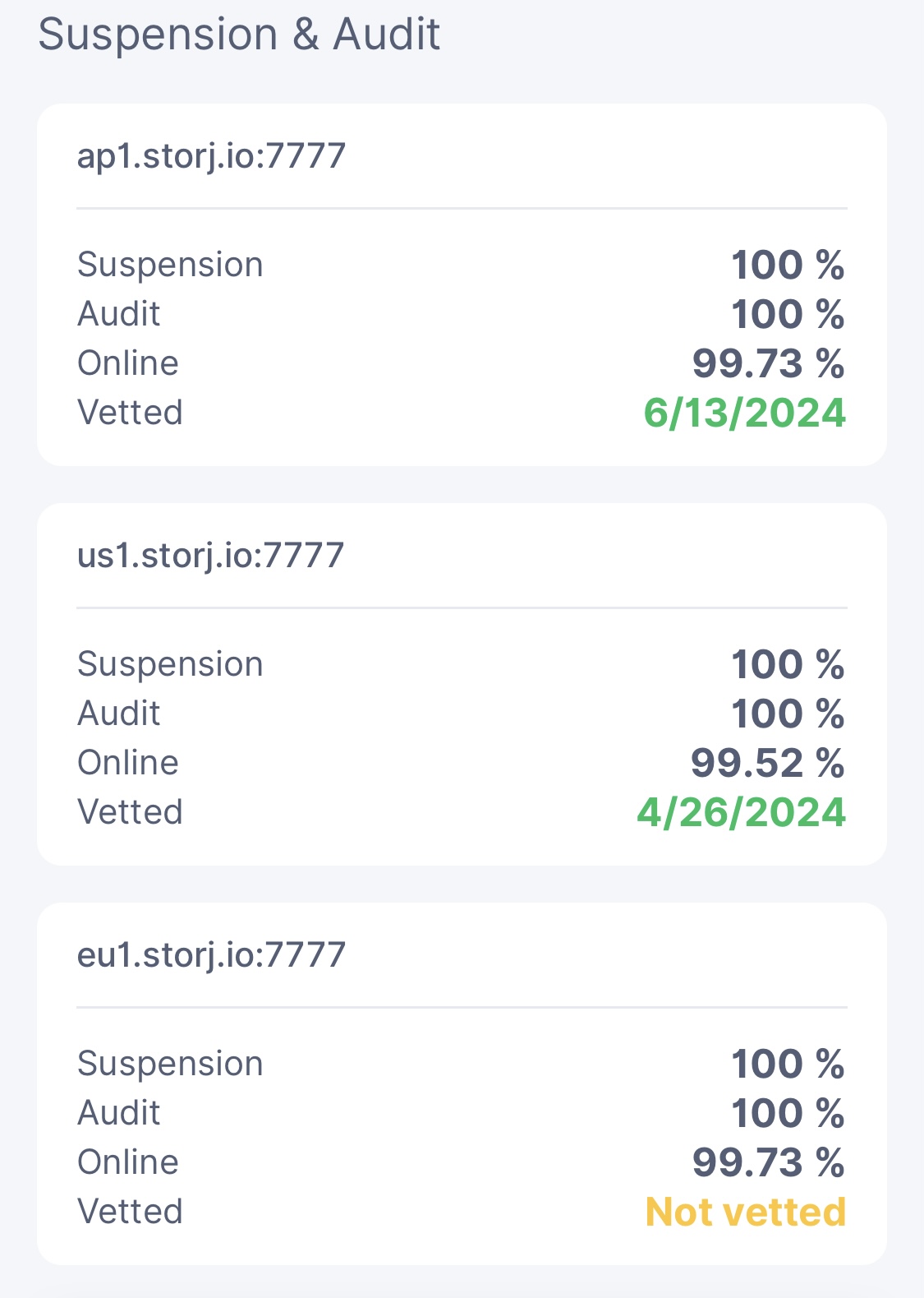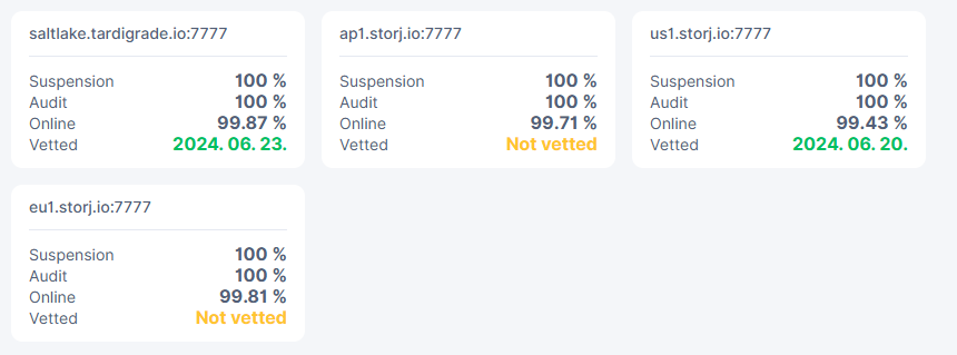 I wonder if there is a false positive bug as well? This node was started 19.06.2025. So according to dashboard US1 vetting was done in 5 days. ![]()