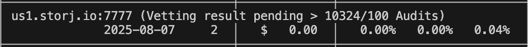 Currently i have satellite us1 not vetted, however by using the estimator.py script (Earnings calculator (Detailed earnings info and health status of your node, including vetting progress and garbage collection status)) i see that have done 10324/100 Audits.