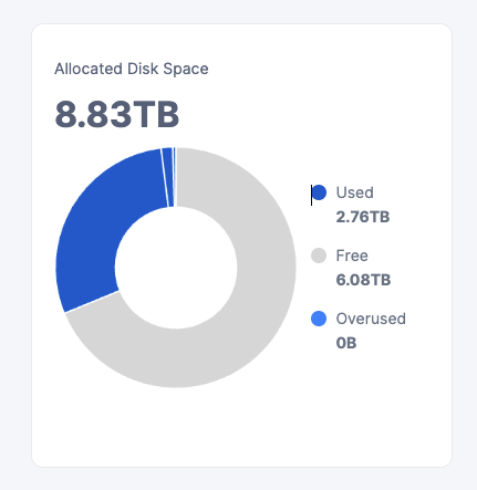 A used space on the dashboard for the dedicated disk feature is displaying incorrectly.