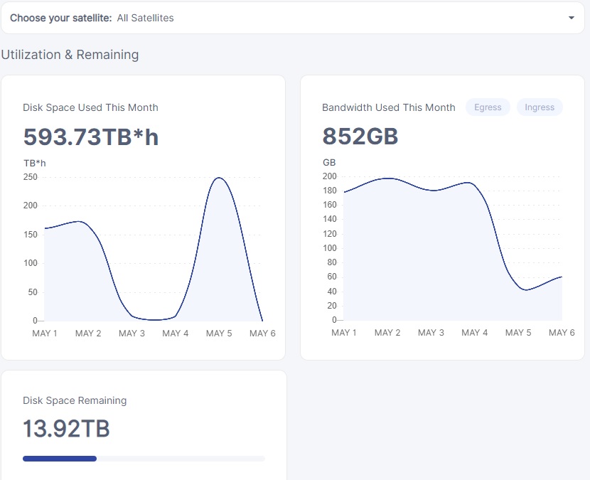 I don’t think it’s a dashboard problem. Dashboard is using API for rendering data, the same API used for payouts calculations and everything. The problem is that satellites just see 5% of my space allocation online. And that is the space I will be paid for.