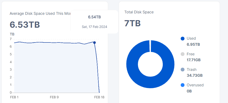 According to the logs and the API I am using over 5TB of space for US1. I’ve also ran du -sh and du -sh --apparent-size and both give values over 5TB for US1. However according to the dashboard I am only being paid for about 3.3TB for US1.