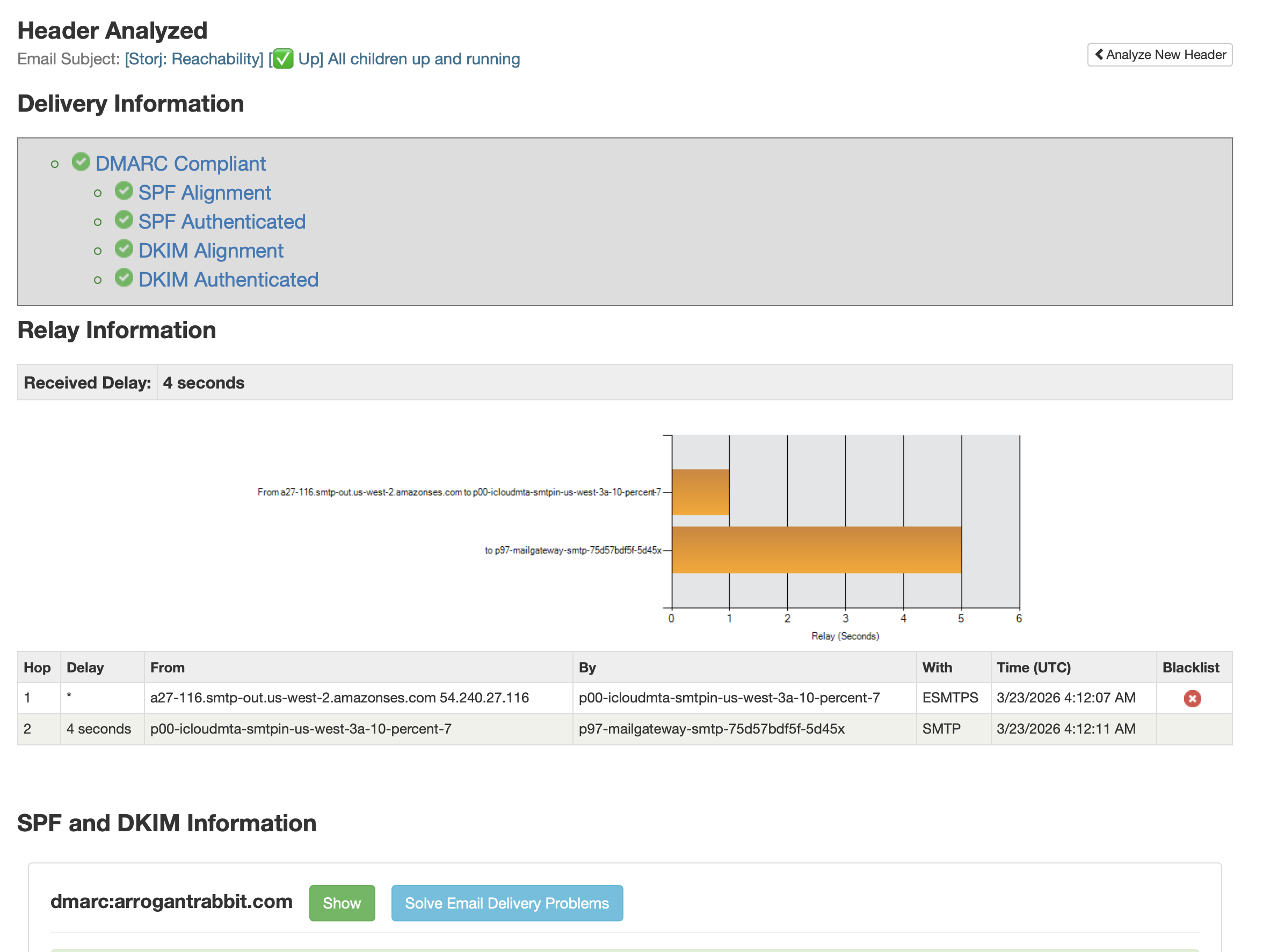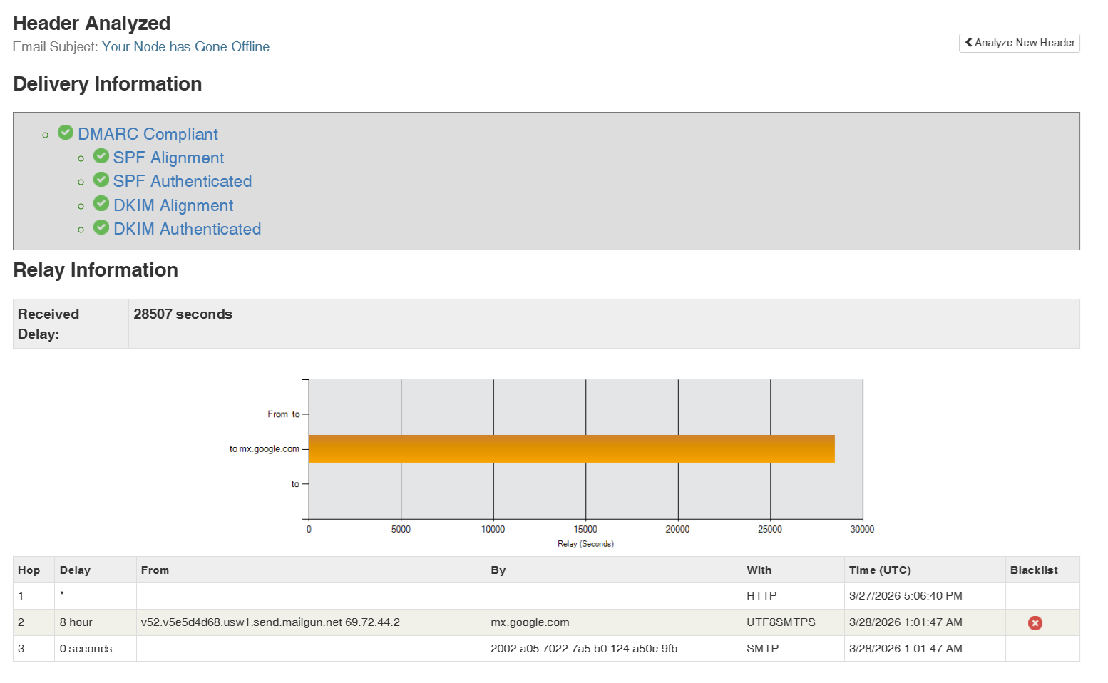 Do “Show headers” on that email (or whatever gmail calls it) and paste them here: Email Header Analyzer, RFC822 Parser - MxToolbox