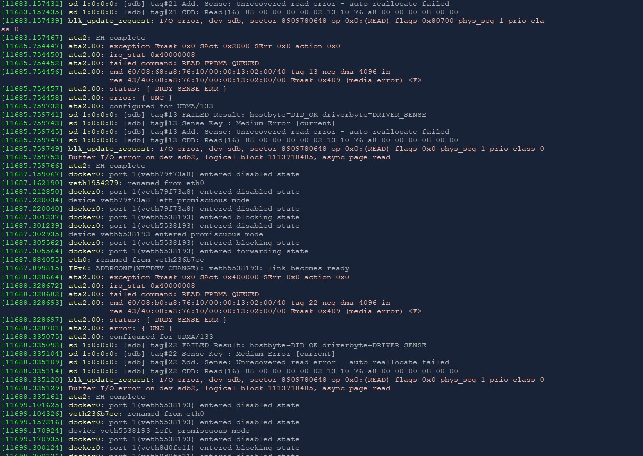 Yeah, its a hardware problem. Got my first “reallocate sectors” warning about a month ago. And from then on i kept close watch, if the bad sector count was increasing - it didnt, so I figured I could keep my second (newer) node online for a while longer. I guess it didnt work out. No problem. I will spin up new node, when my schedule frees a bit. All HDD are connected directly to the board btw. Thx for all the help.