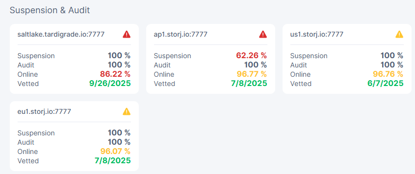 Fixed hashstore, all nodes recovered from suspension except ap1 (not getting audits)