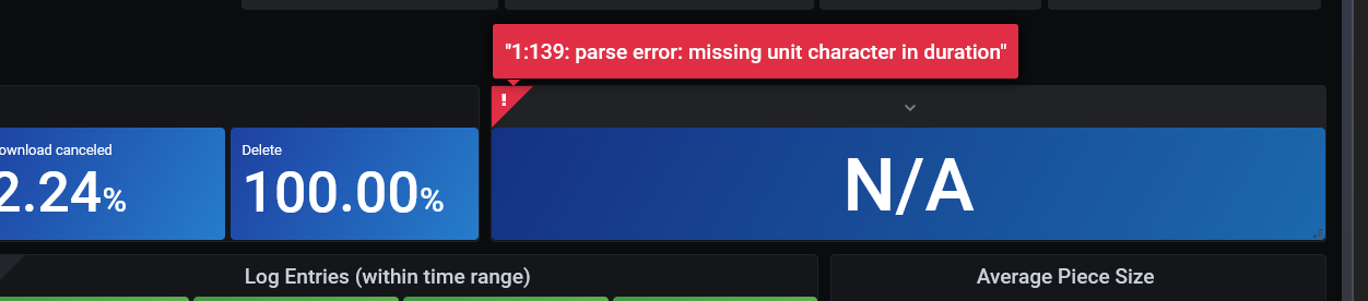 @kevink, Iāve been playing with Grafana Loki and changing the log.enconding: json in the storagenode config.yml. It may be possible to grab metrics that way without a ton of regex work. Iāll let you know if I come up with anything substantial. Loki is not nearly as robust/featureful as Prometheus for dashboard queries, so Iād still be interested in exporting metrics to Prometheus to feed your dashboard.