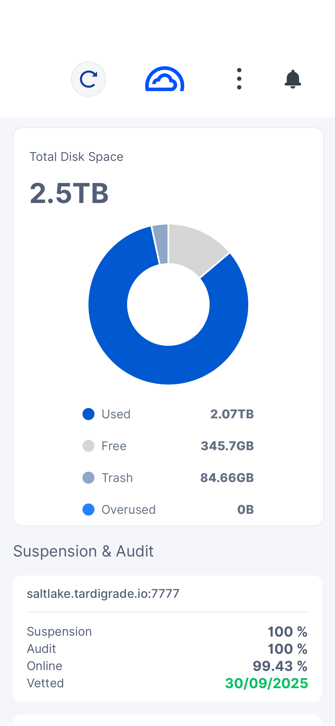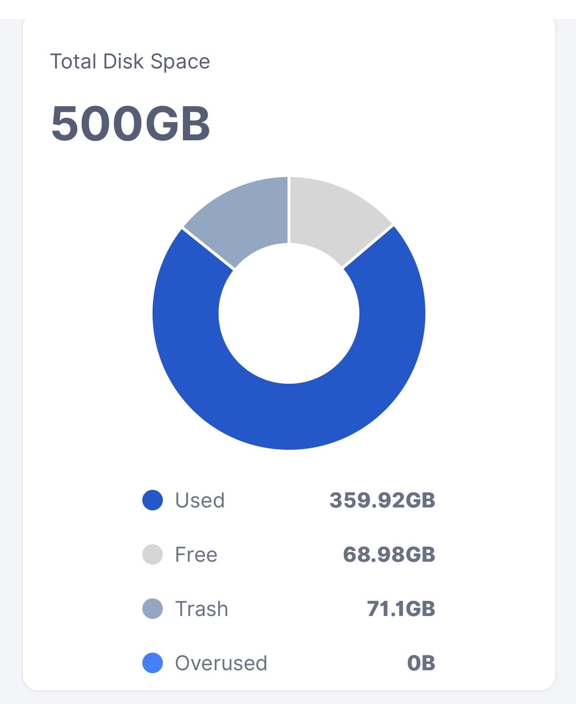 I don’t use multinode dashboard, but the underlaying storage is the same RAID0 (BAD, I know) volume for all the 25 nodes. It’s two 18TB drives, so there’s plenty of space left on it, and each individual subfolder representing a node corresponds with what each node thinks it’s using itself