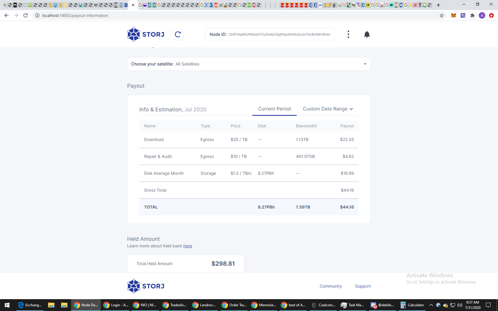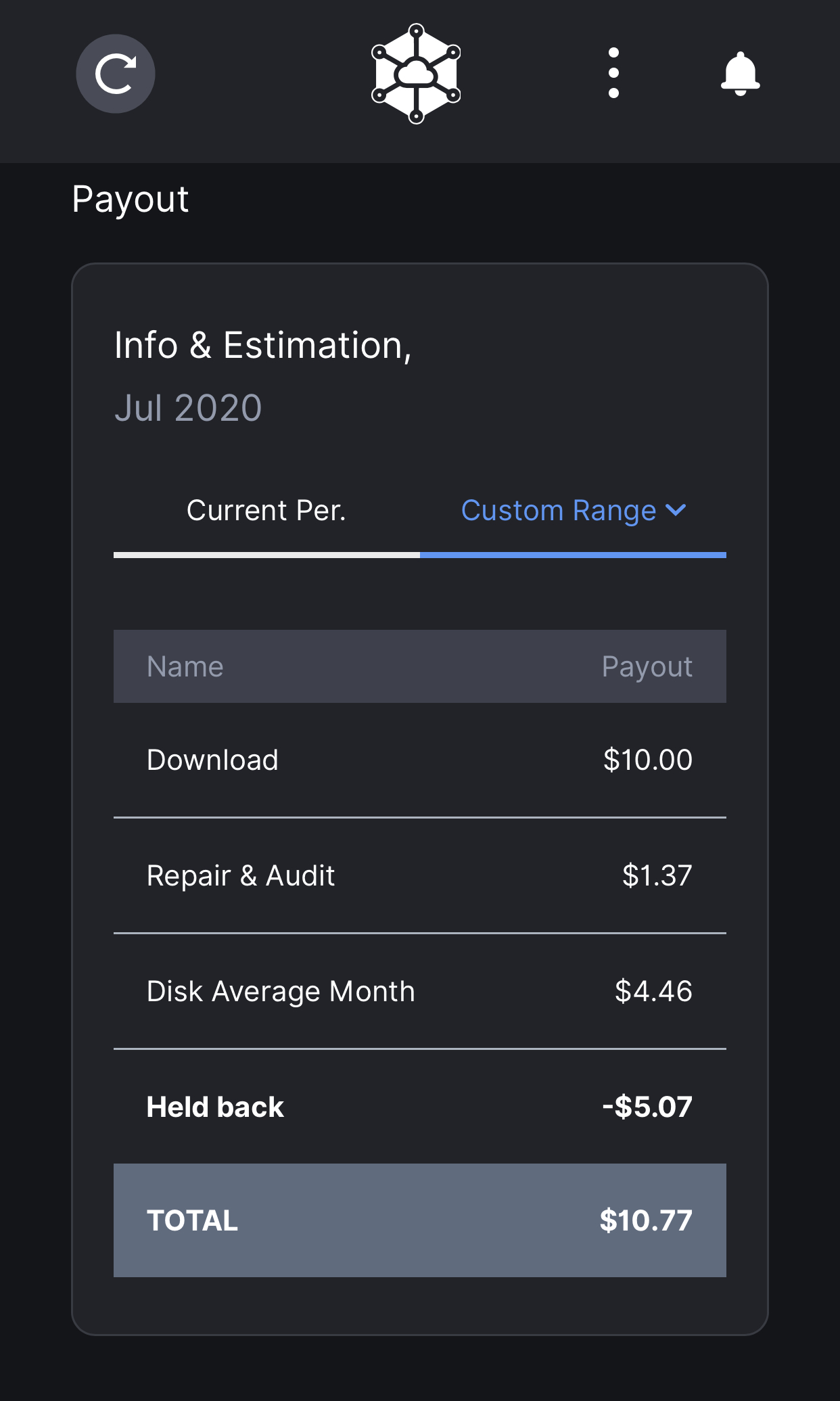 I received payment today but it was much less than what I had in dashboard, it should have been about 44 $ but I got + STORJ 152.37220419 + USD 29.13, this does not seem right