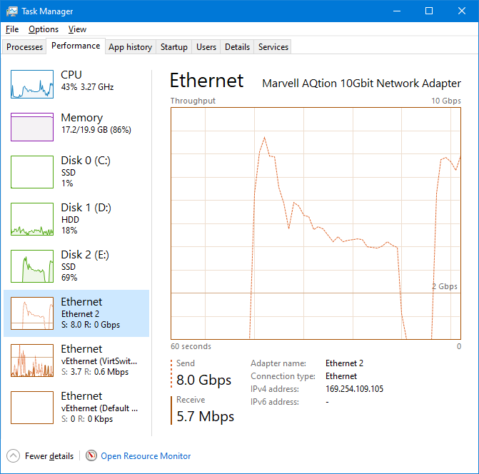10Gbit LAN card (directly connected to the PC above)