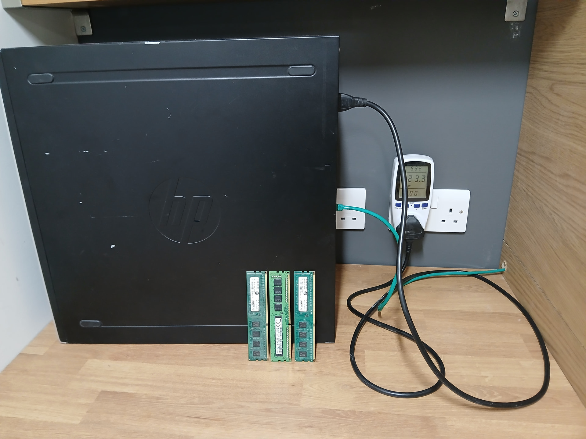 Those are 8GB so I think they use 2 or 3 watts each. I also unplugged the keyboard and mouse to shave another half watt.