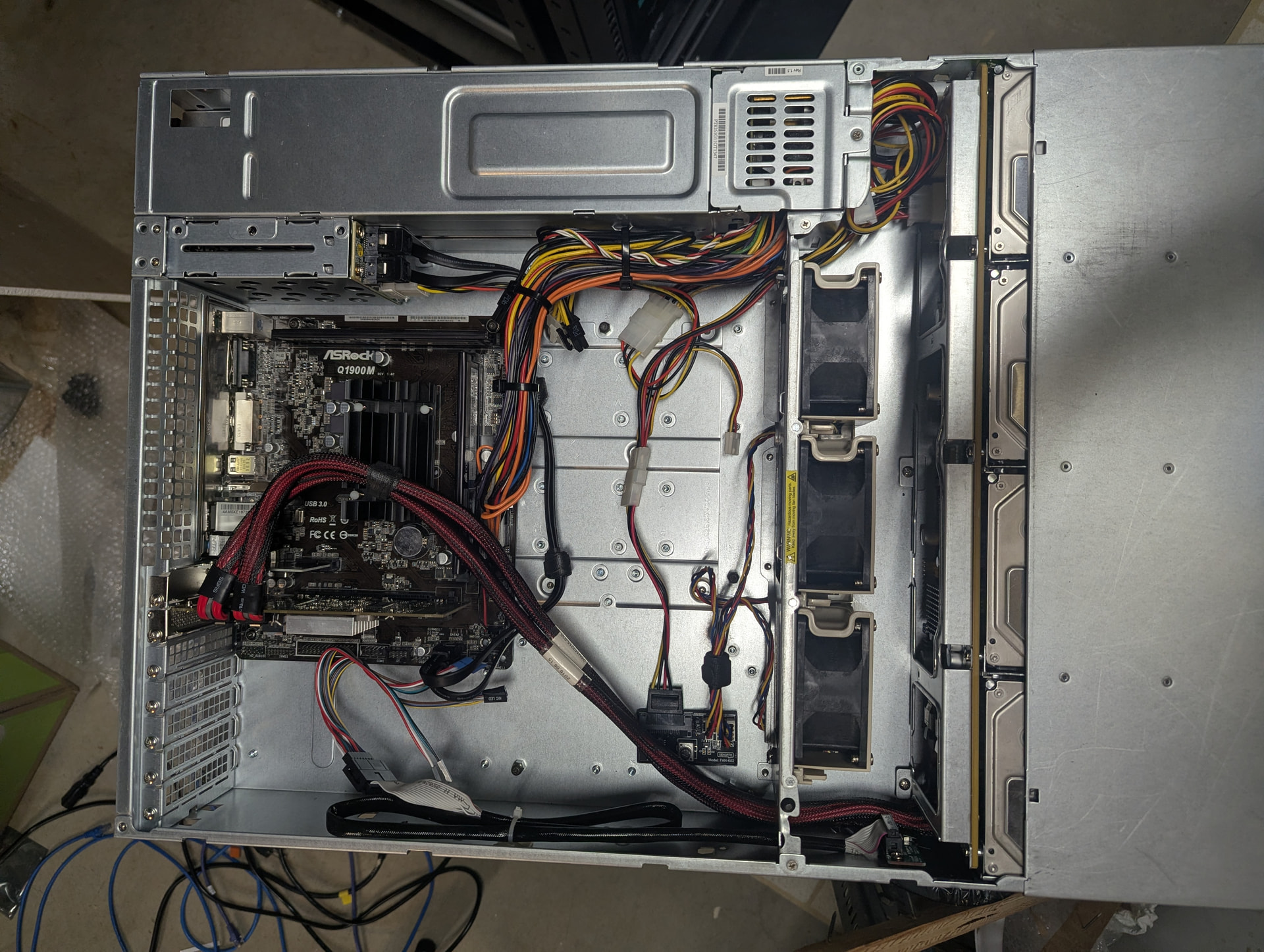 It’s not much, but except for the case it’s all hardware I had already on hand. The case was an excellent Ebay find, otherwise the hacked together desktop case would be its home still. (It’s the 12 bay Supermicro case in the photos).