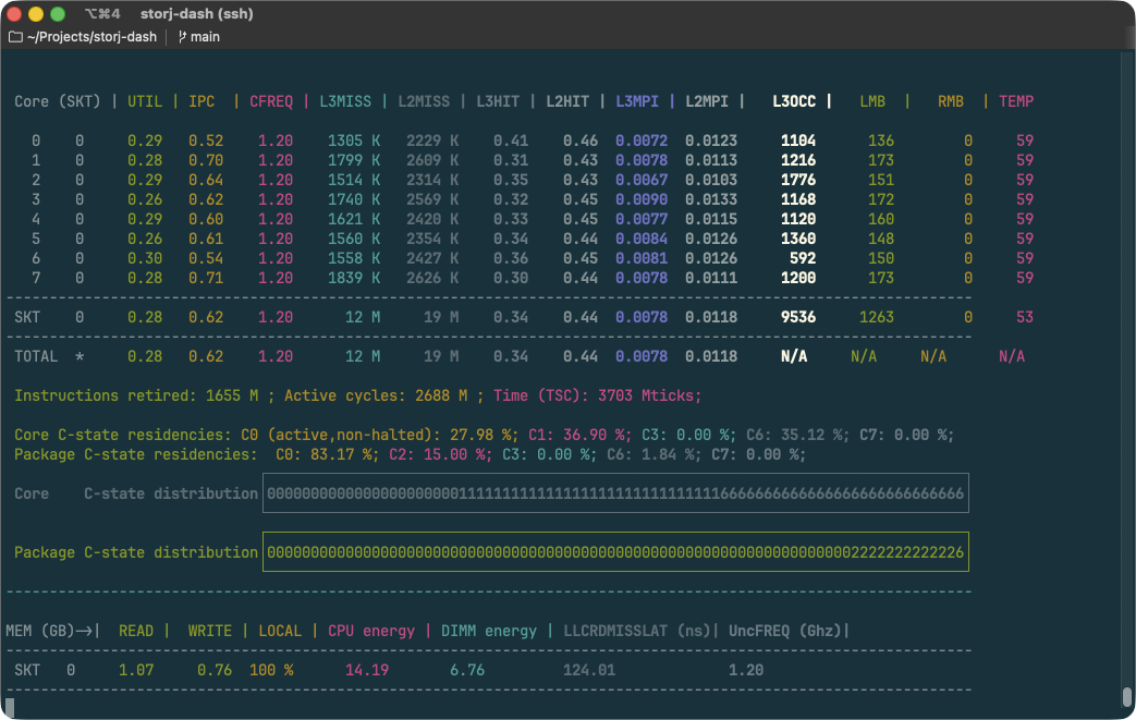 CREQ – ensure it’s not running on high frequency, albeit there can be case when it’s better to run at max frequency if it allows to go to sleep sooner. But for storj workload this is rarely the case.
