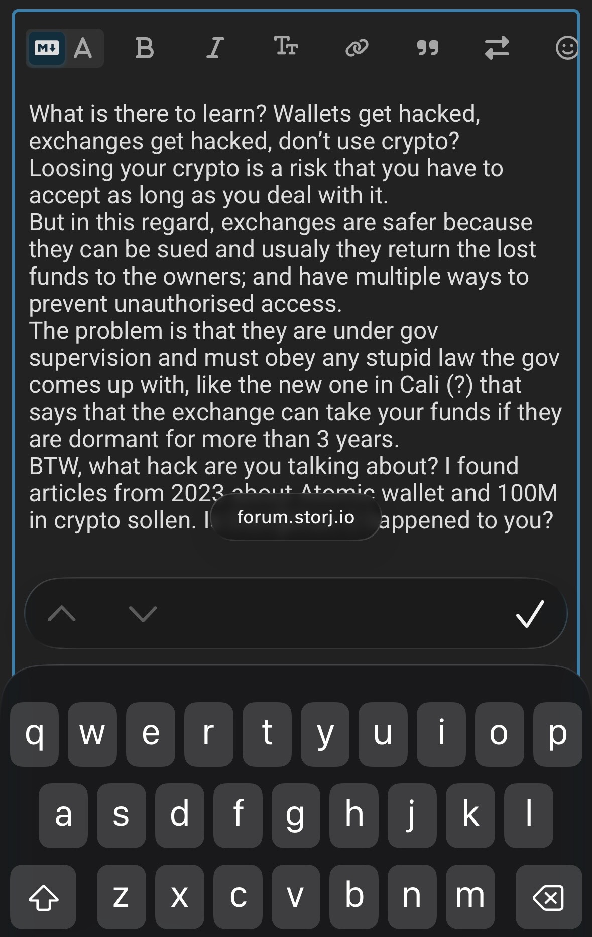 iOs 26.2, iPhone, Safari. When the text in the editor fills the screen, you get to a point where the URL field masks the text under it and you can’t see what you are typing. Some sort of text scrolling would be usefull, to move it up and down inside the editor.