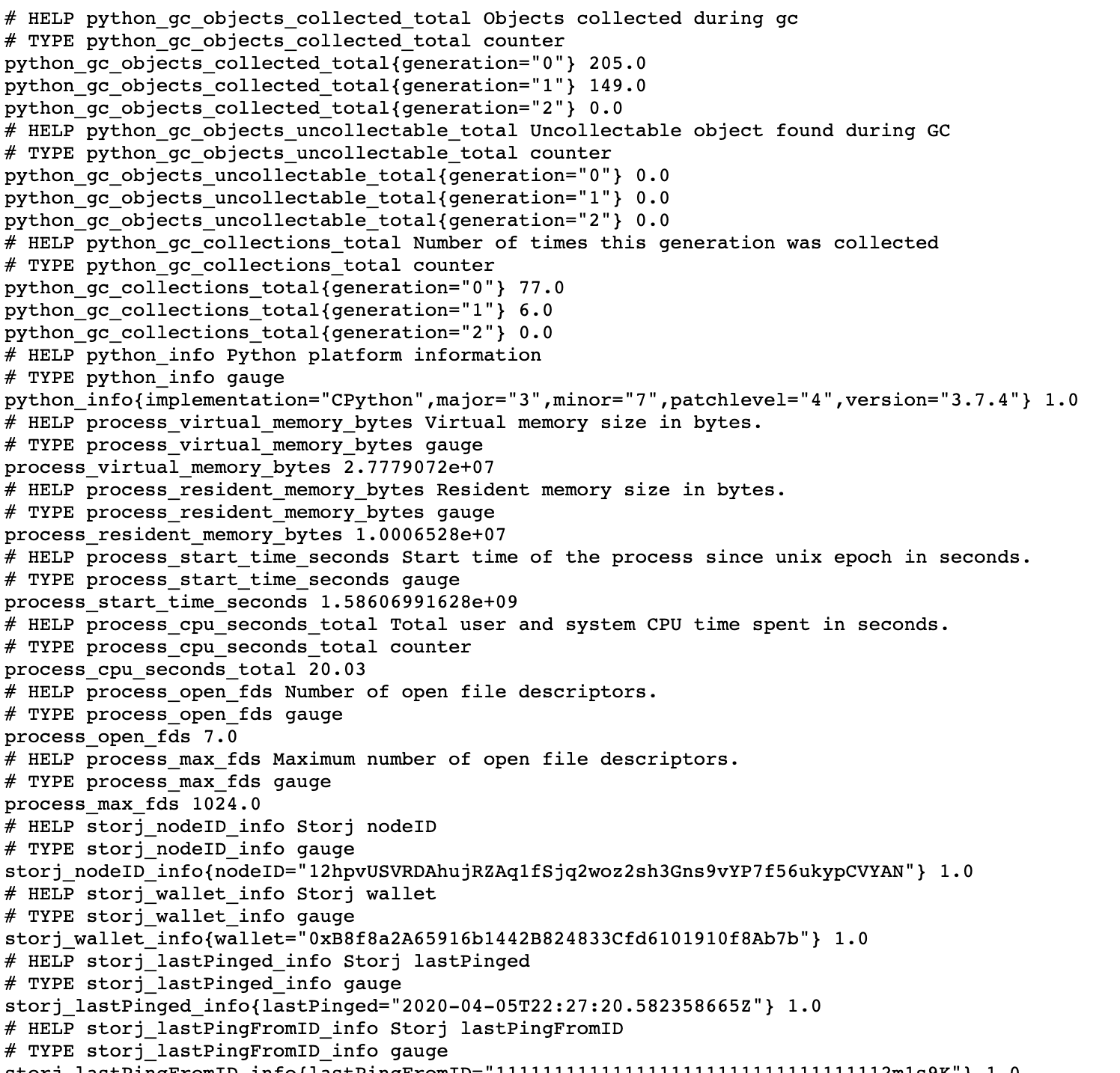 I installed a Storj-Exporter docker and I can go to http://IP:9651 and see the metrics
