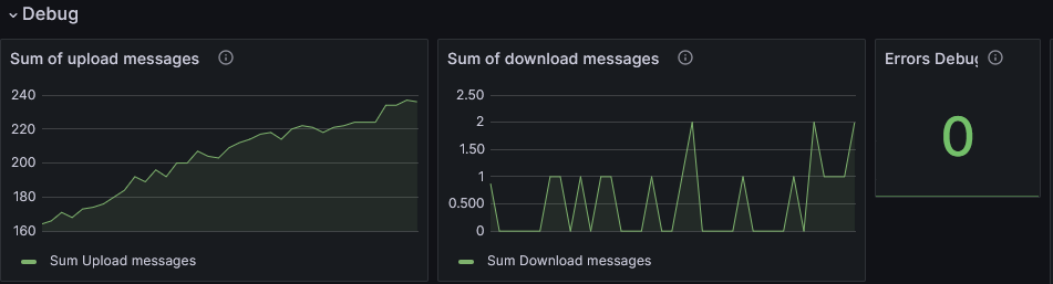 What also surprises me is that under Debug the Sum of upload messages keeps growing, behind the I is this text “This should be around -20<0<20. Theoretically it should be 0 if all uploads successful/canceled/failed/rejected are summed up but restarting the exporter can miss a few messages.”