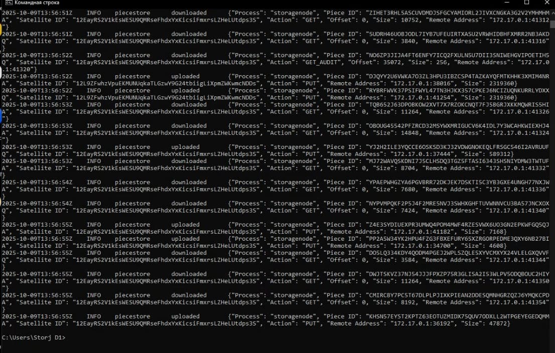 logs (with docker logs storagenodeX 2>&1 | grep "error" | tail)