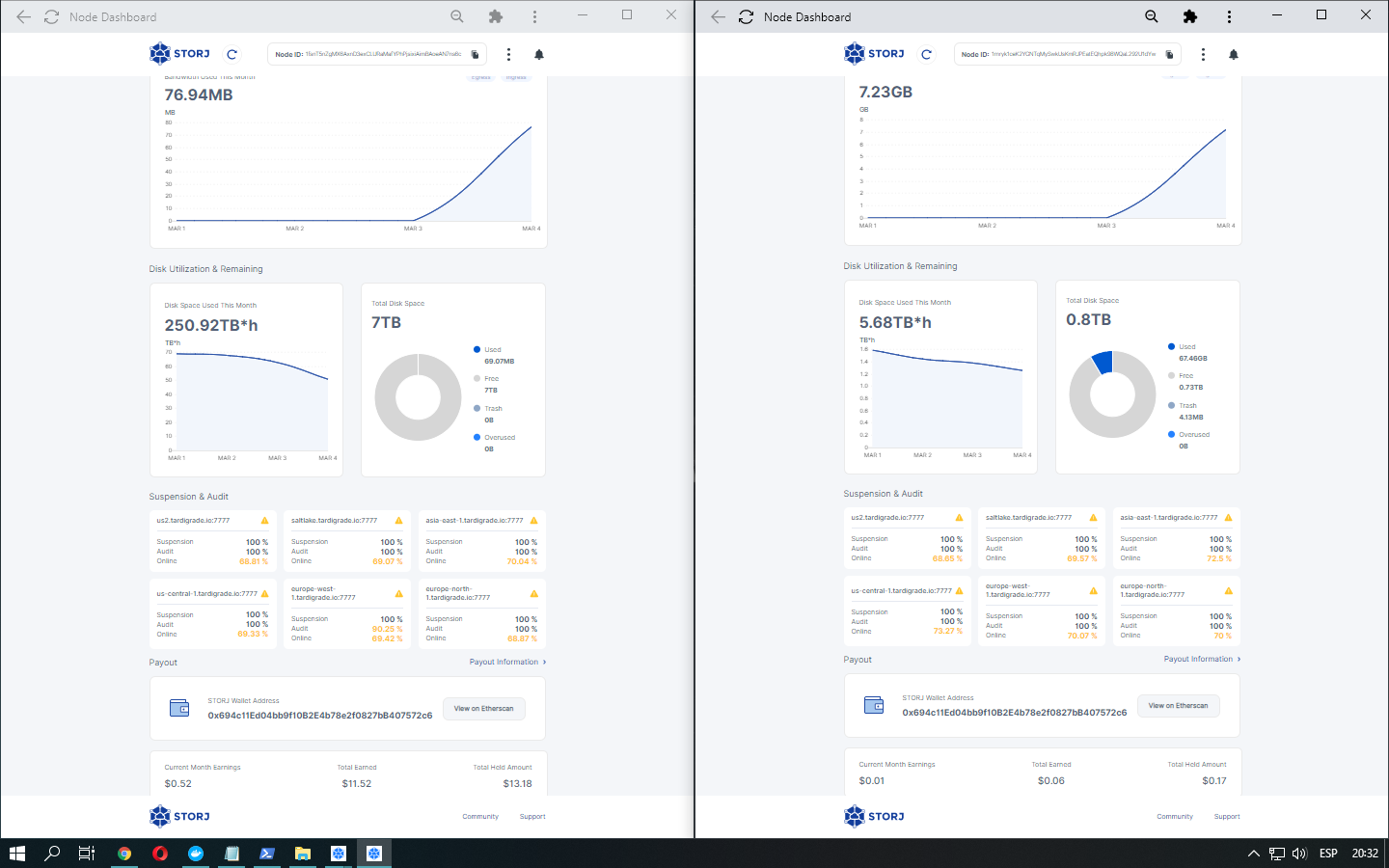 Para obtener información, tiene 288 horas tiempo de inactividad antes de que se suspenda su nodo. Entonces tienes una semana para solucionar el problema. Tan pronto como nodo estaría en línea, la puntuación en línea volvería a aumentar, pero no tan rápido como se reduce.