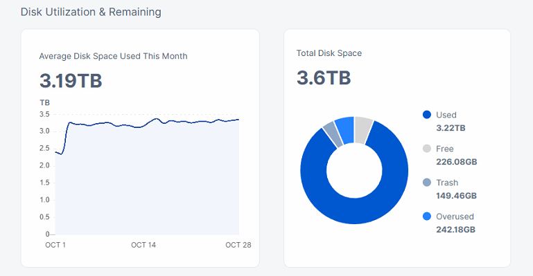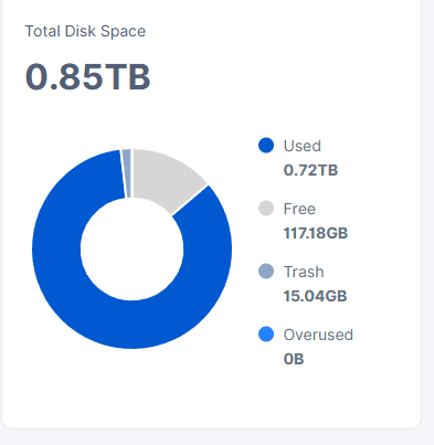 On the other hand, it used up all the available space on the disk, but still reporting 112 GB available space in the dashboard: