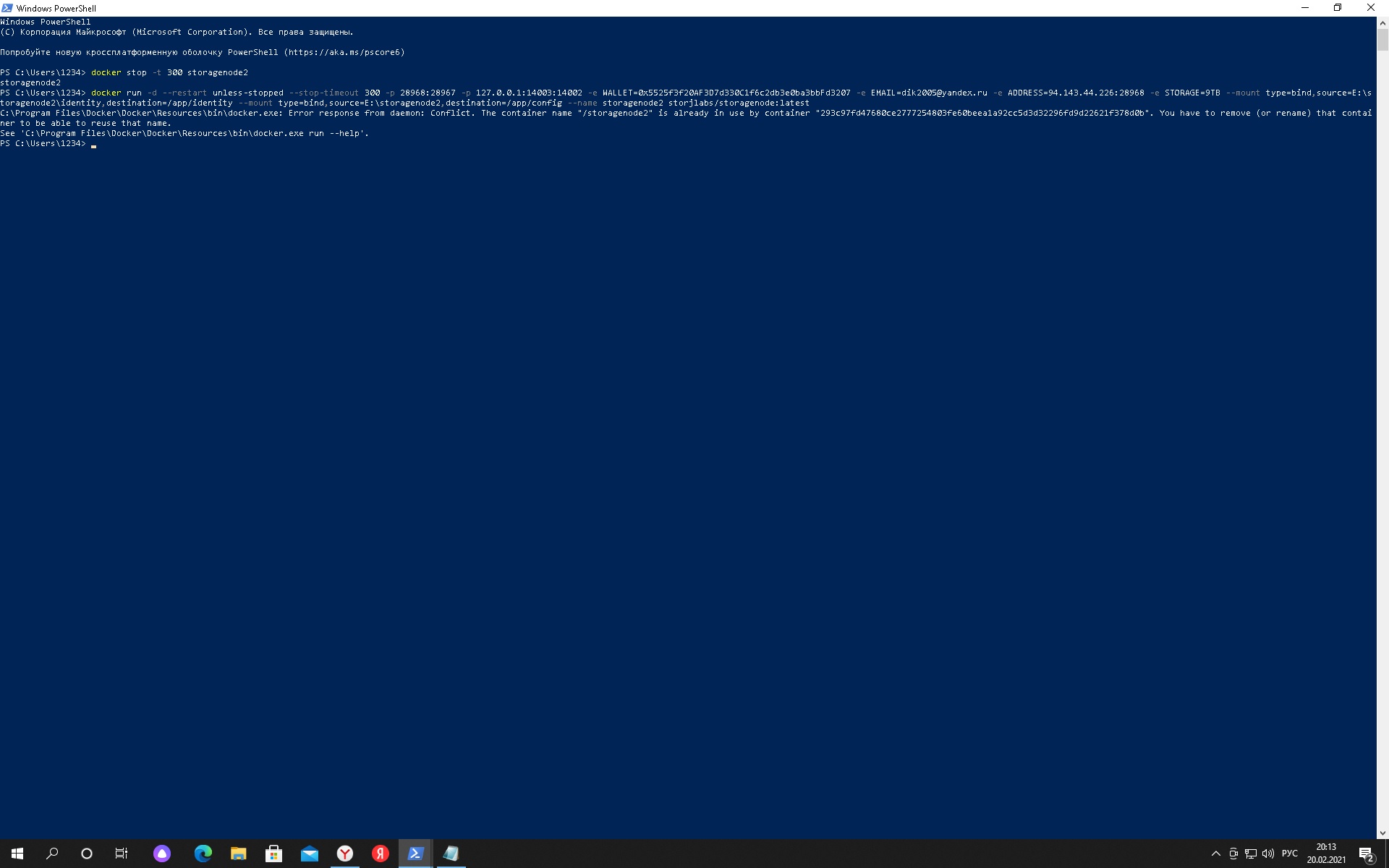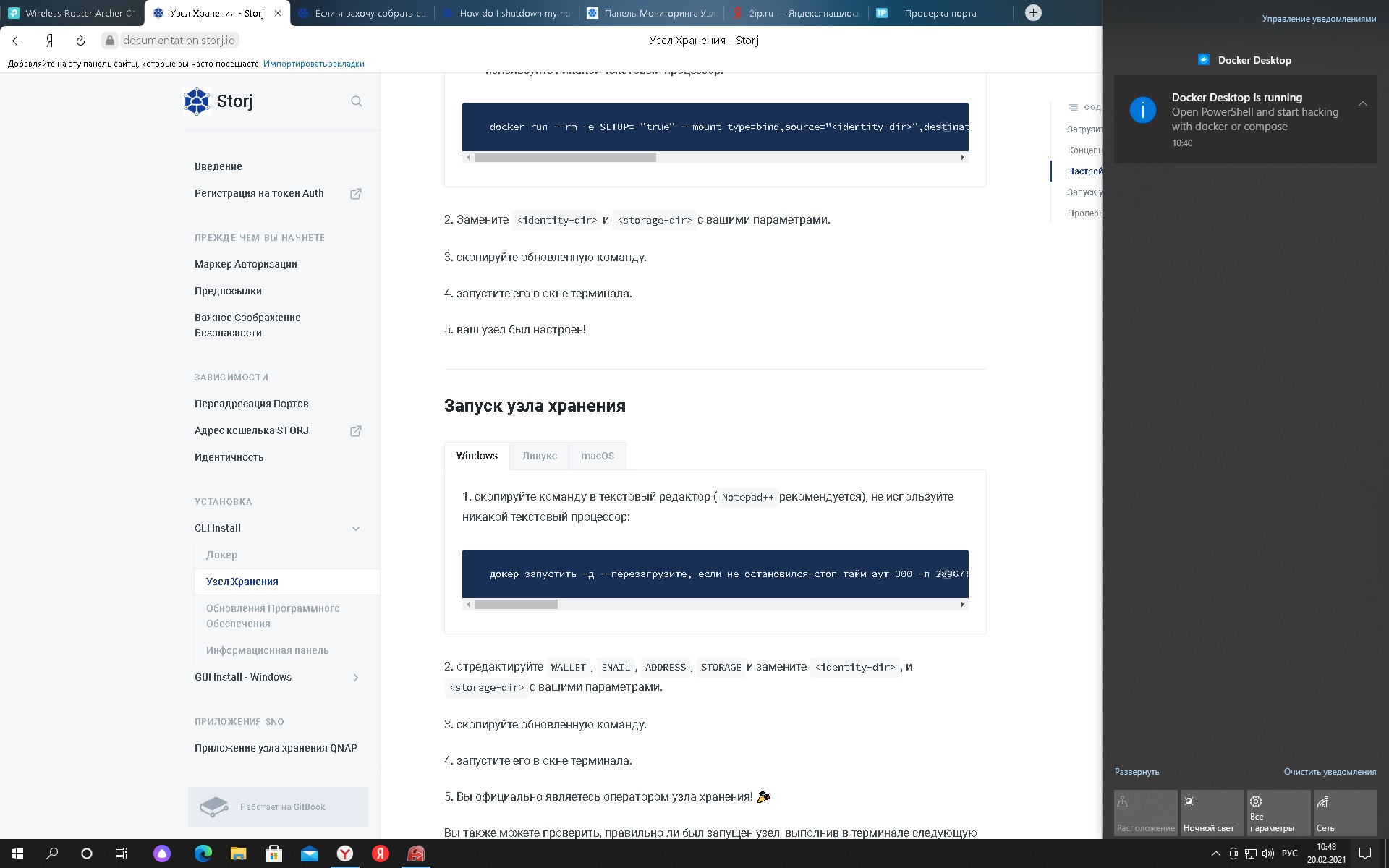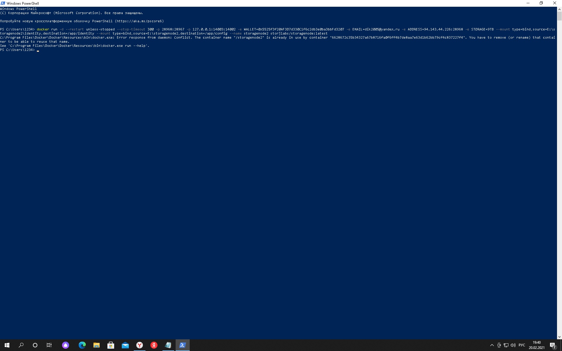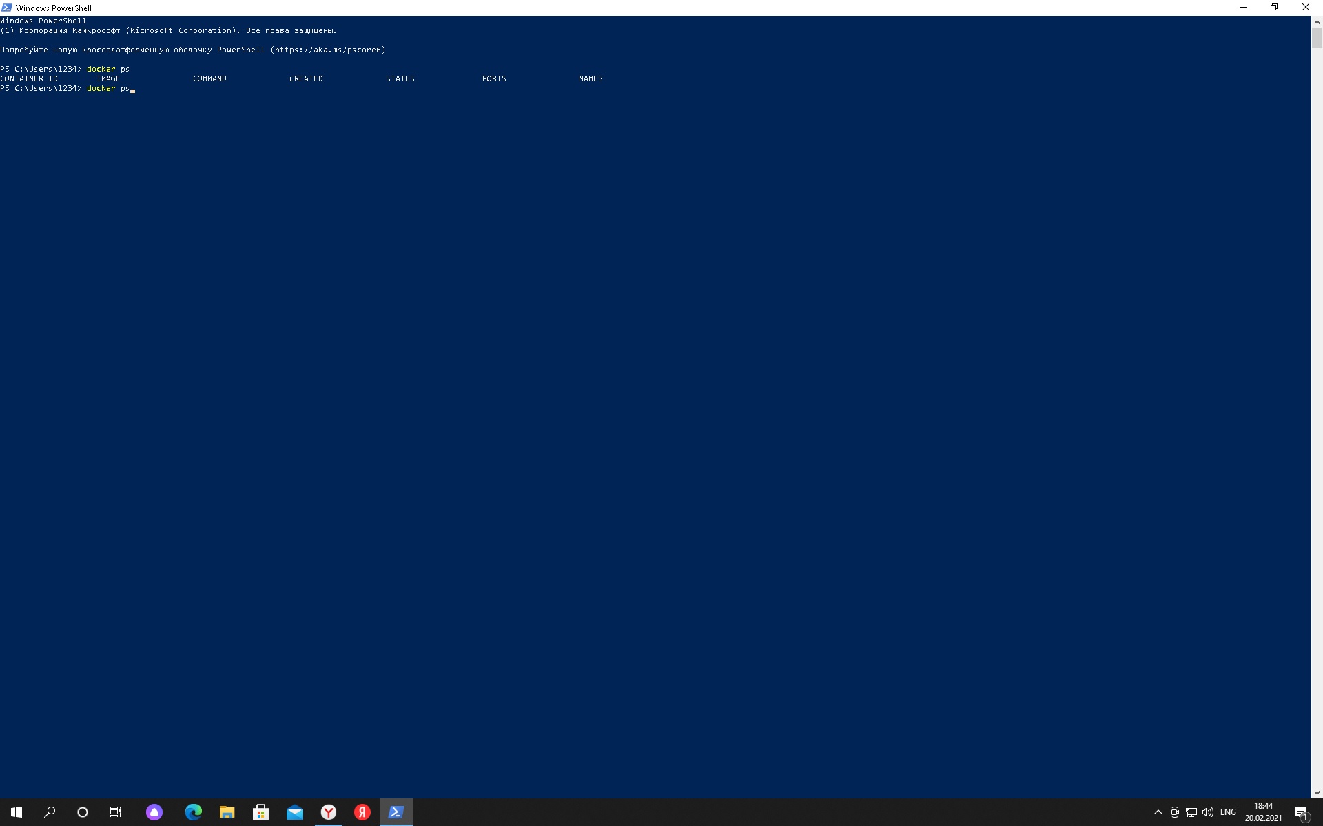 Это скриншот когда я вчера запускал докер