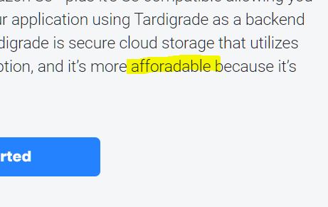 I’m not sure if there is a better place to post this. I’m a node operator who just happened to be looking at the Tardigrade homepage (https://tardigrade.io/) after your recent mailing. The design looks very nice, but I wanted to let you know about a couple of typos that take away from the experience and cause the site to look less credible.