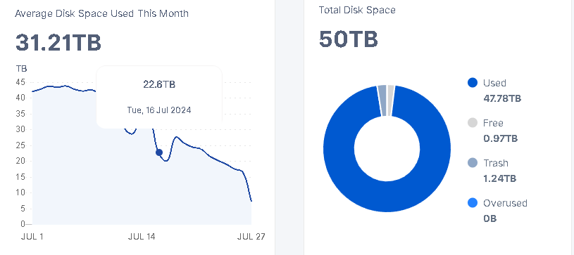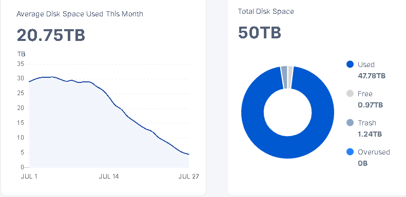 The scary thing about turning off test ingress… is that we all get reminded of the slow erosion of TTL data beneath the surface, that’s usually hidden. You can watch your %-used gradually get nibbled away as the nodes continue their housekeeping… like your disk has sprung a leak.