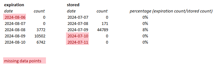 2024-07-08T02:13:33Z WARN reputation:service node scores worsened {"Process": "storagenode", "Satellite ID": "1wFTAgs9DP5RSnCqKV1eLf6N9wtk4EAtmN5DpSxcs8EjT69tGE", "Total Audits": 8441, "Successful Audits": 7989, "Audit Score": 1, "Online Score": 0.9571428571428572, "Suspension Score": 1, "Audit Score Delta": 0, "Online Score Delta": -0.0071428571428571175, "Suspension Score Delta": 0}