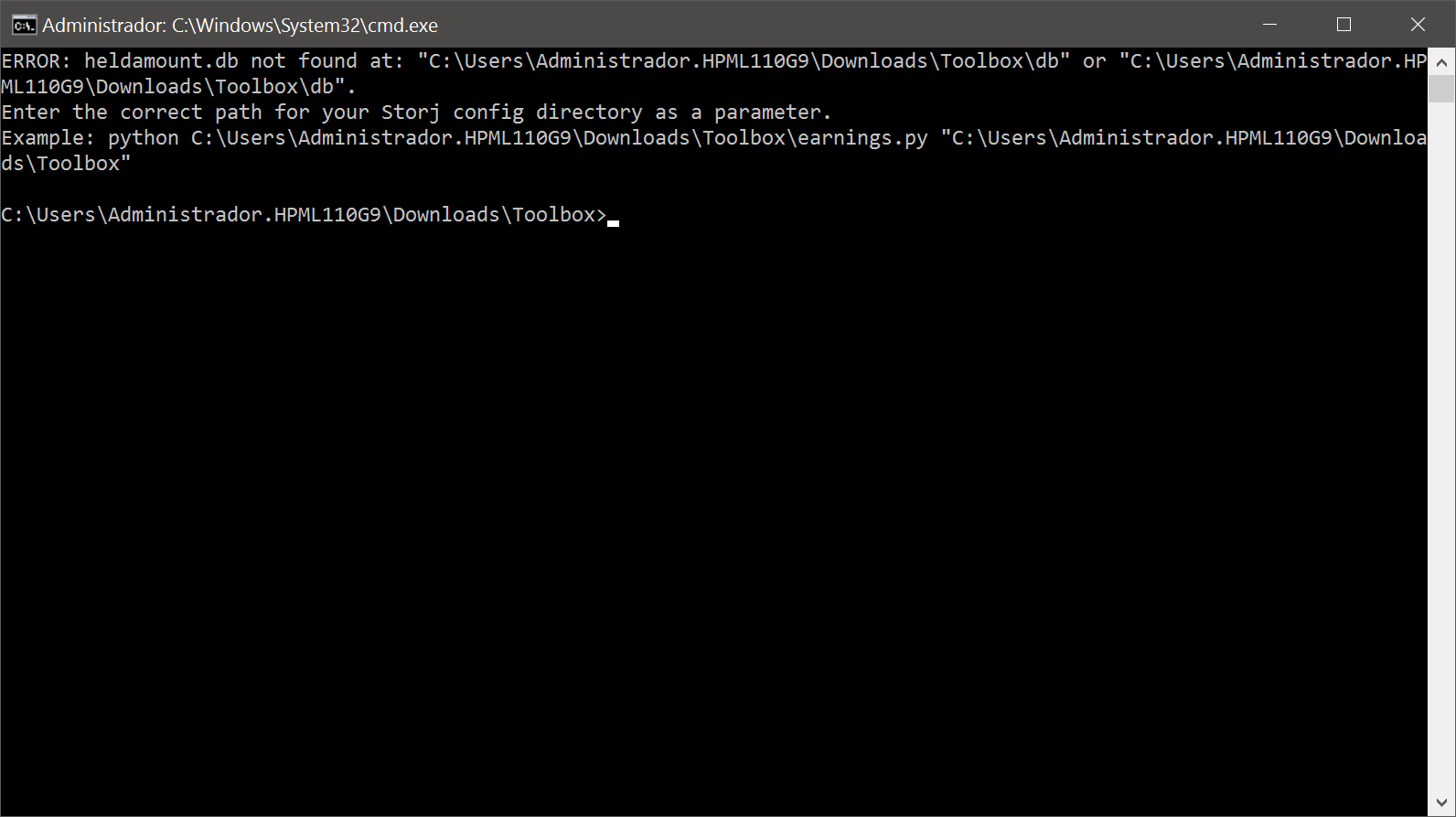 All I can tell you is that the earnings calculator expects a path to the storage location as a first parameter and uses the current working directory if none is provided. But I don’t know how this path is passed through to the script by the Toolbox. @Vadim can you clarify how @Robertomcat should specify this path?